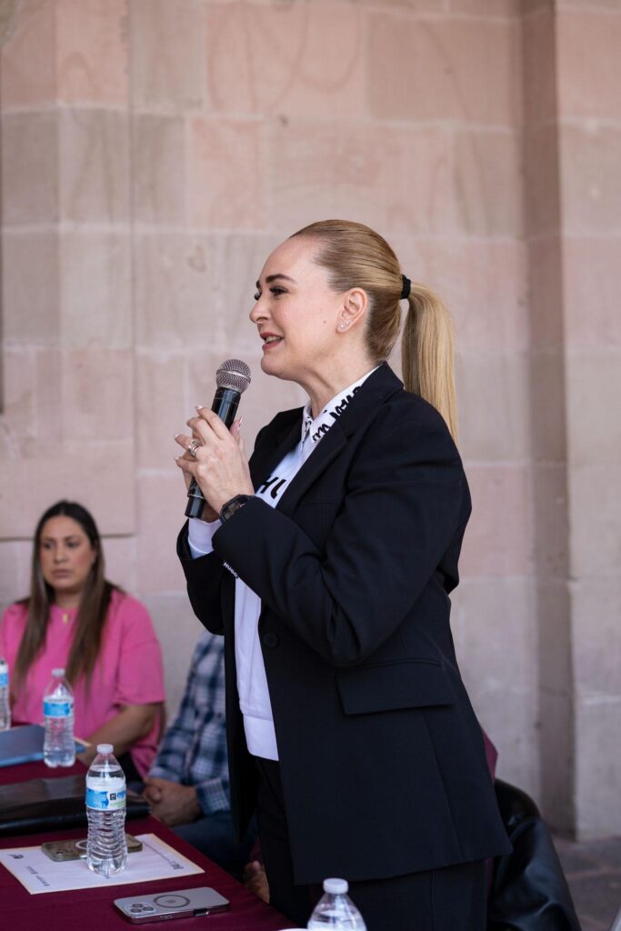 La presidenta municipal, Wendy Limón, explicó que la Tienda del Bienestar fue instalada dentro de la Presidencia Municipal para facilitar el acceso de la población.