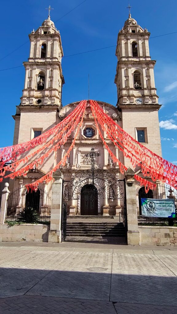 En el centro de Yahualica, el templo domina el paisaje con su presencia sólida y elegante, ganándose el apelativo de “pequeña catedral”.